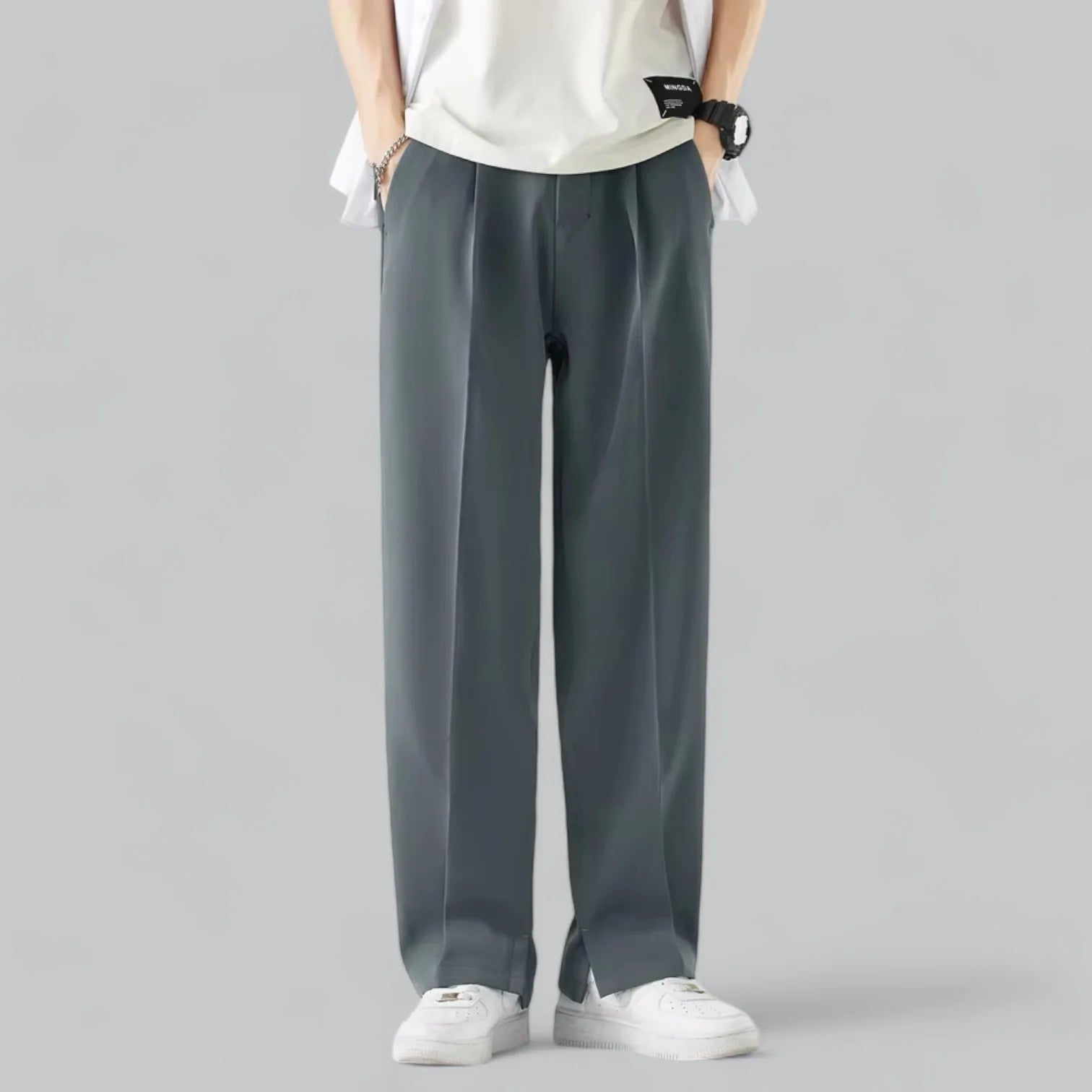 Modieus en Trendy – Het stijlvolle ontwerp met wijde pijpen maakt deze broek een perfecte keuze voor de modebewuste man die zowel comfort als stijl zoekt.