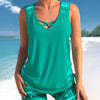 Dit veelzijdige badpak combineert de bedekking van een tanktop met het gemak van een bikini, ideaal voor zomerse dagen aan het strand of bij het zwembad.