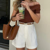 Vrouwen zijn dol op deze shorts vanwege hun flatterende pasvorm, gestructureerde design en veelzijdige stijl, perfect voor het creëren van moeiteloze zomeroutfits.