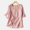 Dames retro overhemd van katoen en linnen met poppenkraag