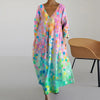 De Aurora-mode.nl BohoBloom is een luchtige en stijlvolle maxi jurk die perfect is voor lentedagen, zomerse vakanties of een ontspannen dagje uit. De jurk is gemaakt van een zachte katoen-polyester mix en heeft een losvallende A-lijn pasvorm met een V-hals en lange mouwen. De abstracte bloemenprint en subtiele zakken geven de jurk een nonchalante, bohemian uitstraling met een vleugje elegantie.