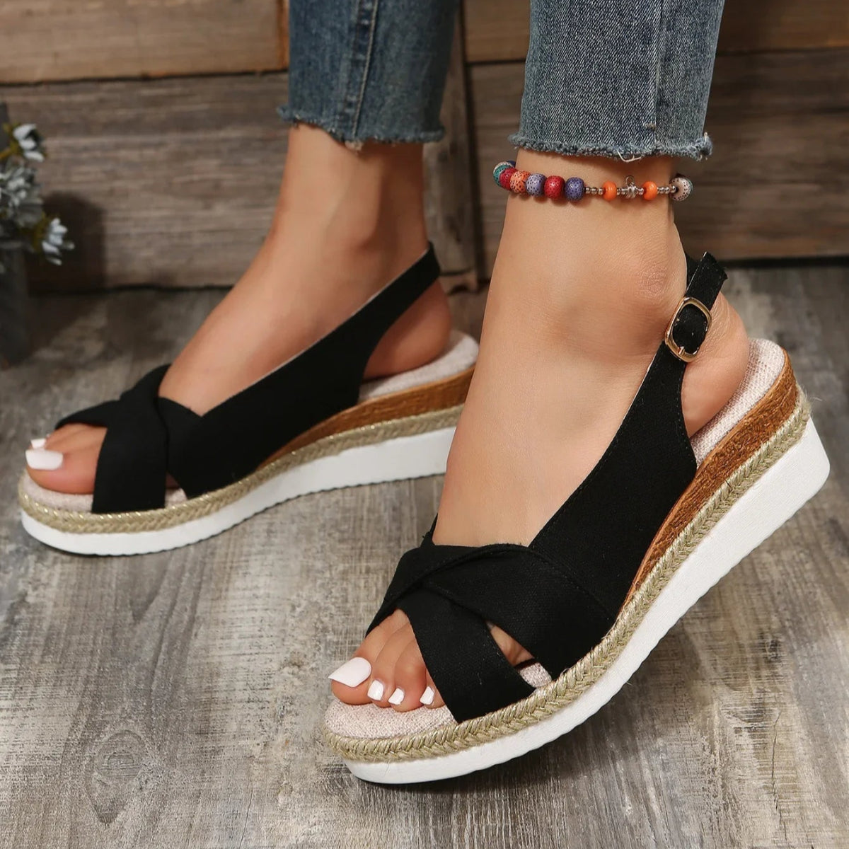 ✔ Open-teen design – Laat je voeten ademen op warme dagen. ✔ Comfortabele sleehak – Biedt een lichte verhoging zonder in te boeten op comfort. ✔ Verstelbare gesp – Voor een perfecte pasvorm en stevige grip. ✔ Modieuze dikke zool – Zorgt voor extra stabiliteit en stijl. ✔ Geschikt voor dagelijks gebruik – Perfect voor casual en zomerse outfits.