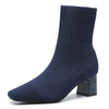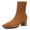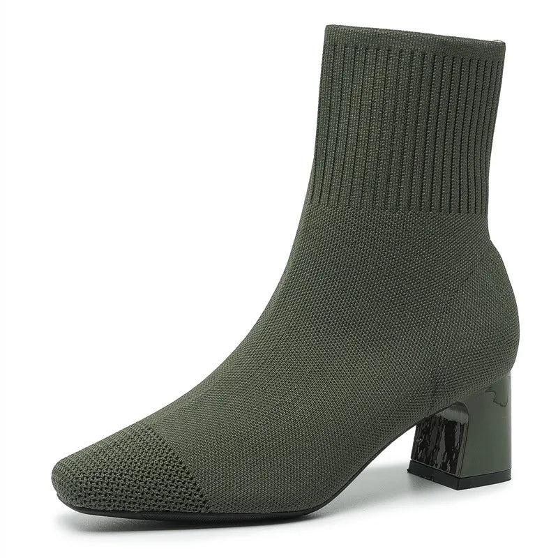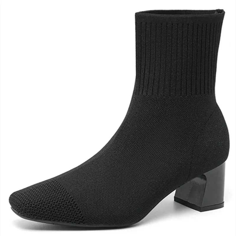 Deze trendy enkellaarsjes combineren comfort en elegantie met een stretchgebreid design dat zich perfect naar je voet vormt. De stevige blokhak zorgt voor stabiliteit en een modieuze uitstraling.