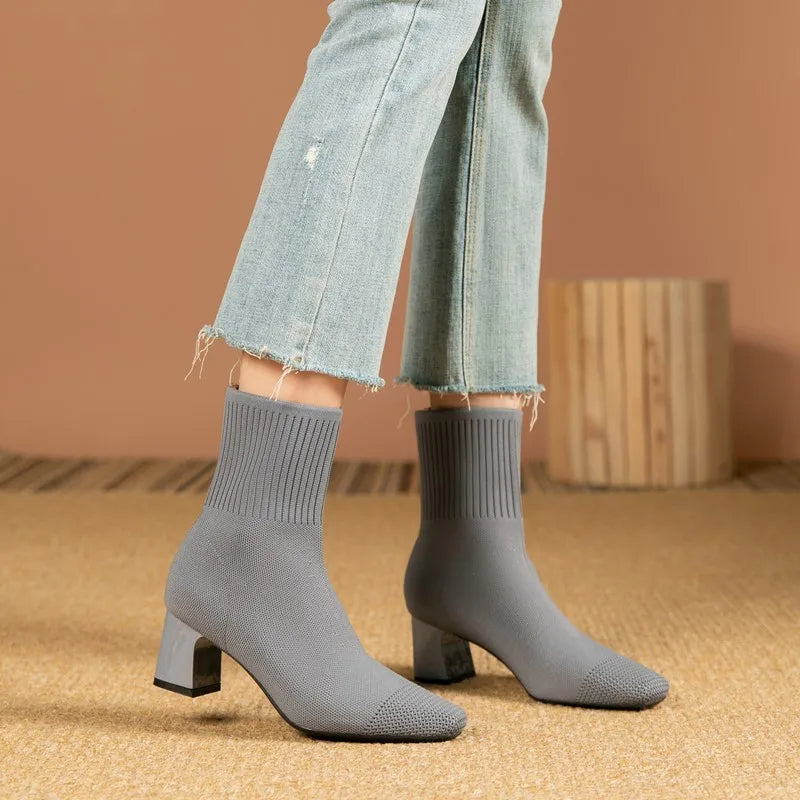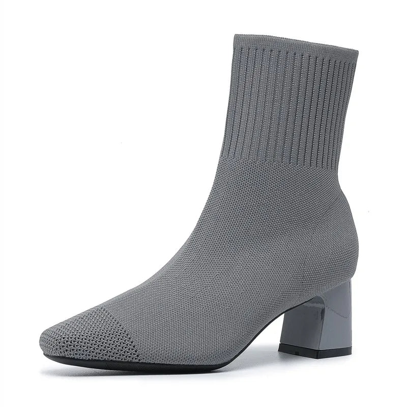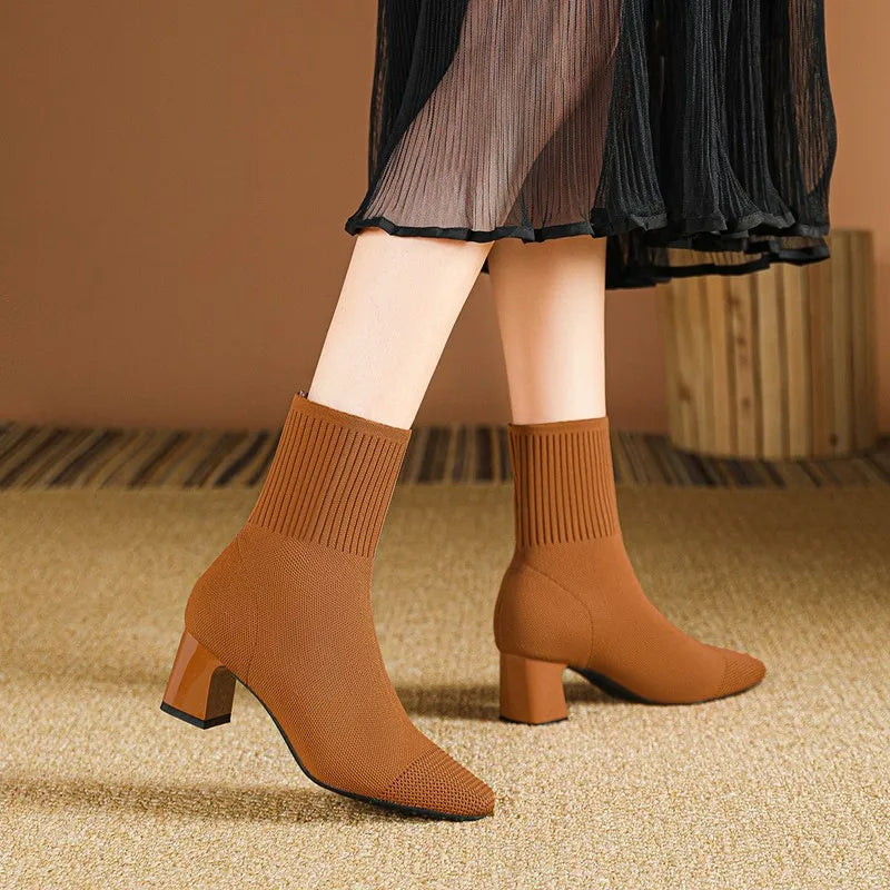 Modieuze gebreide soklaarzen met hak voor Dames