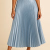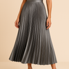Deze elegante plissérok in luxueus satijn geeft je look een verfijnde uitstraling. Perfect voor zowel casual als chique gelegenheden.