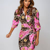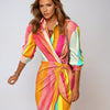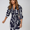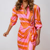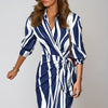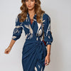 Deze stijlvolle maxi-jurk combineert elegantie met comfort. De abstracte print, lange mouwen en het strikdetail in de taille zorgen voor een flatterende en verfijnde uitstraling. Perfect voor werk, diners en speciale gelegenheden.