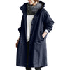 Voorkant blauwe lange regenjas waterdicht voor dames