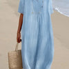 Stap in de elegantie van een strandjurk met een luchtig, relaxed silhouet, perfect voor vakantie of een casual zomerdag. Gemaakt van lichtgewicht, ademend materiaal, heeft hij een flatterende V-hals en soepel vallende korte mouwen. Deze moeiteloze jurk combineert prachtig met sandalen of een hoed met brede rand, zodat je er verzorgd uitziet en je comfortabel voelt, of je nu langs de kust wandelt of geniet van een strandcafé.