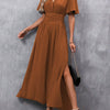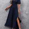 Stap deze zomer in moeiteloze elegantie met de elegante maxi-jurk met V-hals voor dames. Deze jurk tot op de enkels heeft een flatterende empire taille en een vloeiend A-lijn silhouet en is perfect voor casual dagen, tuinfeesten of weekendjes weg. De zachte polyester stof en fladdermouwen voegen charme en comfort toe aan je seizoensgarderobe.