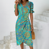 Deze jurk is ideaal voor het voorjaar en de zomer en combineert casual gemak met chique elegantie.