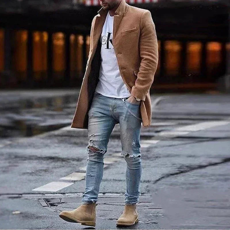 Met de Aurora-mode.nl Braxton heren wolmix jas voeg je moeiteloos een vleugje klasse toe aan je garderobe.