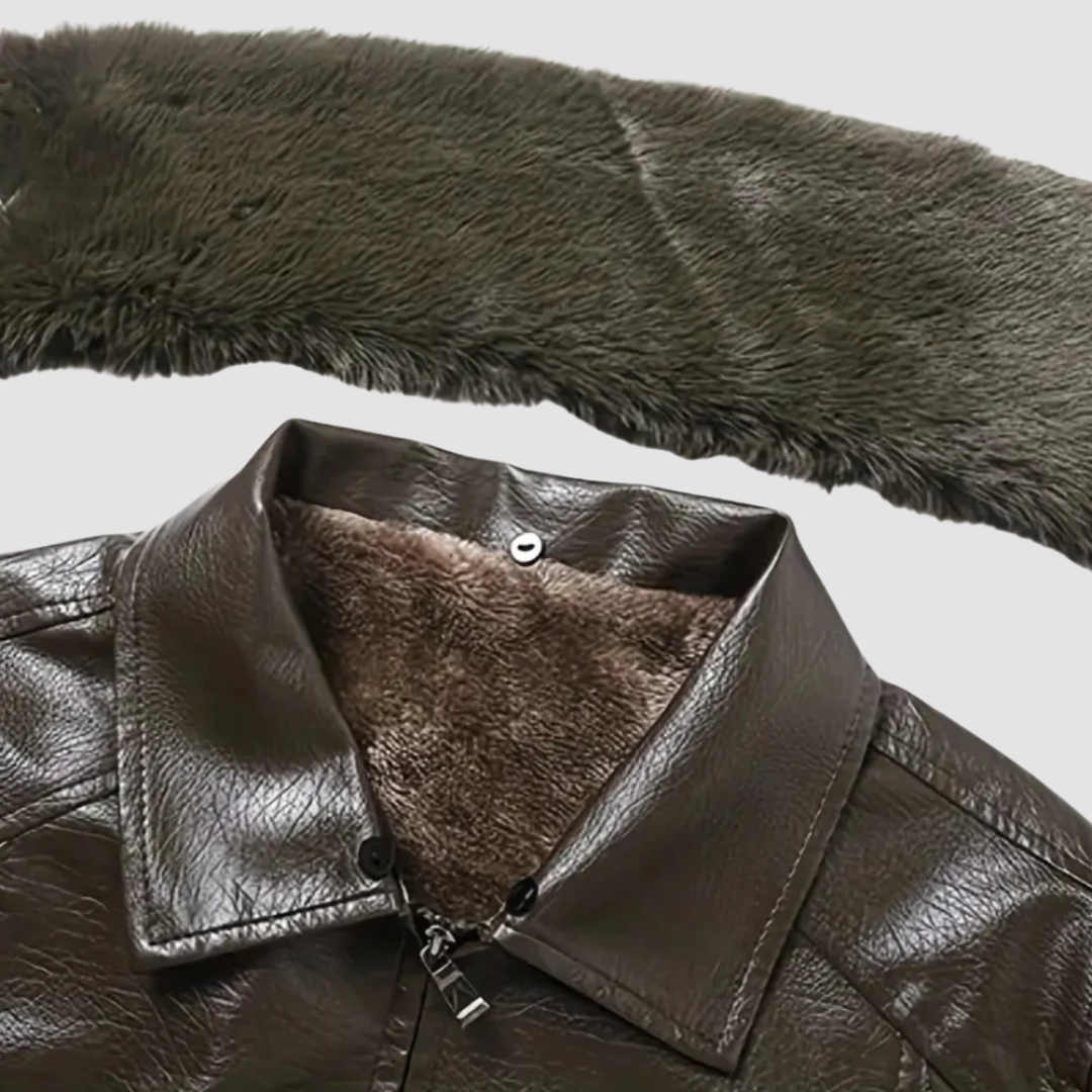 De Aurora-mode.nl Skyfall is de perfecte combinatie van stijl en functionaliteit. Deze pilotenjas is gemaakt van diervriendelijk kunstleer, met een afneembare bontkraag en een warme fleece binnenvoering die je beschermt tegen kou. Dankzij de waterafstotende en winddichte eigenschappen blijf je comfortabel, ongeacht de weersomstandigheden.