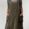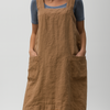 Combineer moeiteloze stijl met praktisch comfort in deze damesjurk in schortstijl van katoen en linnen. Hij is geschikt voor dagelijks gebruik en perfect voor koken, tuinieren of Comfortabel uitstapjes dankzij de ademende stof, ruime zakken en relaxte pasvorm. De gekruiste bandjes op de rug en de strikbandjes aan de zijkanten zorgen voor een stevige maar verstelbare pasvorm die flatterend is voor een breed scala aan lichaamsvormen.
