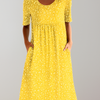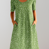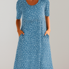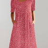 Fleur je zomergarderobe op met deze midi-jurk met zoete bloemen en hoge taille, die elegantie combineert met alledaags gemak. Hij is gemaakt van lichtgewicht polyester breisel en heeft een flatterend A-lijn silhouet, O-halslijn en zachte korte mouwen voor een ontspannen maar gepolijste look. De empire taille accentueert je figuur, terwijl de dubbele steekzakken functionaliteit toevoegen zonder afbreuk te doen aan de stijl.