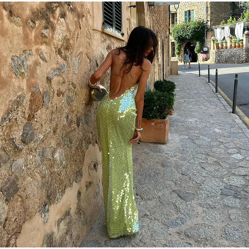 Luxe Paillettenjurk met Open Rug en Spaghettibandjes