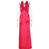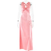 Sexy Satijnen Maxi Jurk met Open Rug en Strikdetail