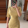 De Aurora-mode.nl EdgeMuse brengt een gewaagde Y2K vibe naar je garderobe met een speels asymmetrisch ontwerp, metalen oogjes en geplooide details. Deze korte jurk is perfect voor wie durft op te vallen tijdens feestjes, festivals of een stijlvolle avond uit.