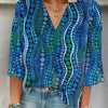 Geef je lente- en zomergarderobe een speelse upgrade met deze blouse. De abstracte polkadotprint, de flatterende V-hals en de luchtige 3/4-mouwen zorgen voor een casual-chique uitstraling die perfect combineert met zowel jeans als een nette pantalon.